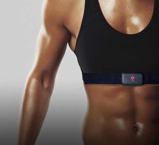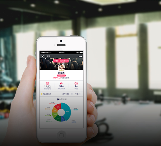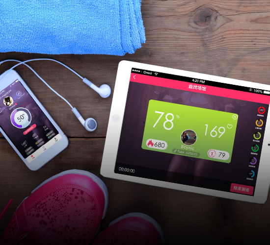 不同强度的色彩能够对使用者的高强度运动状态进行预警。在运动中实时监测心率、运动强度及卡路里消耗值,采用业内公认的卡氏公式换算 TK 值,综合评分,为每个使用者评估运动效果。